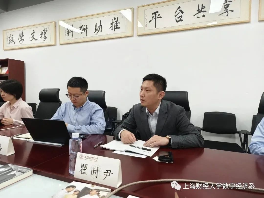 2023年6月2日上午10点在科研实验大楼815会议室,海通证券企业金融部总经理助理王嘉和海通证券私人银行前滩中心总经理瞿时尹等一行5人到上海财经大学数字经济系洽谈人才培养、产学融合、党建联建和社会公益等方面事宜,上海财经大学数字经济系筹备组刘兰娟教授、崔丽丽教授,数字经济系党总支书记赵鹏飞参加会谈。