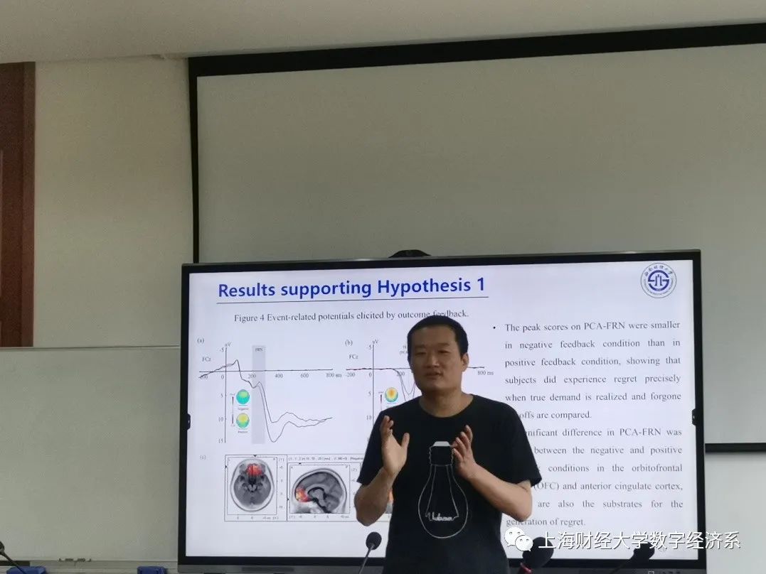讲座开始,赵琳教授首先从基础的报童模型(newsvendor model)并介绍了该模型理论上的最优决策。之后他指出在现实生活中,决策者经常不会遵循理论上的最优策略,而倾向于选择均值作为订货量。对于这一现象,有两种常见的解释:一种是过度自信(overconfidence),即人们有时会高估均值在概率分布中出现的概率;另一种是后悔厌恶(regret aversion),即人们在做决策时可能会犹豫不决,受到后悔情绪的影响而倾向于选择均值。赵琳教授及其合作者在研究中聚焦于“后悔”这一心理因素,并运用心理学和认知神经科学中的脑电成像技术(EEG),旨在从神经层面探索后悔情绪对决策者行为的影响以及算法推荐的作用。