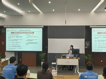 付艳老师介绍了我校研究生教育的基本情况,特别为同学们详细解读了学籍管理实施细则,并希望同学们严格遵守学籍管理规定,恪守学术道德规范,坚守学术诚信,顺利度过在数经系的学习阶段。