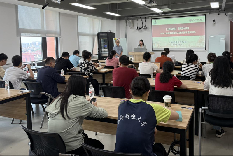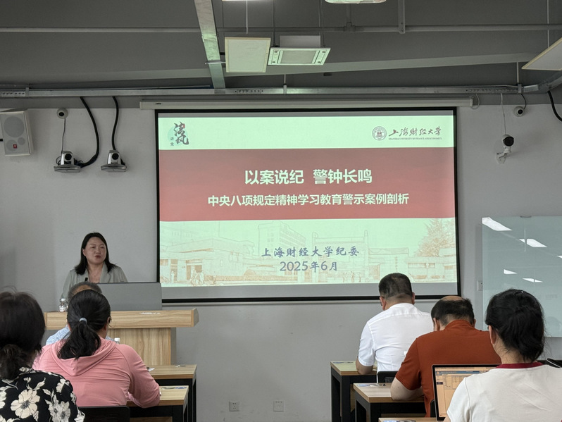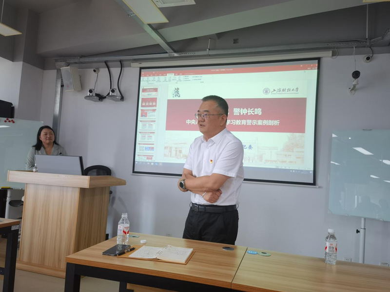 为全面从严抓好党的作风建设,确保中央八项规定精神学习教育走深走实,取得实效,按照学校相关工作部署要求,2025年6月17日下午,数字经济学院第一党支部、数学学院教工第一党支部与第二党支部在科研实验楼912教室联合举行中央八项规定精神学习教育活动,学校纪委委员、商学院党委书记徐敏为大家“送课上门”,开展中央八项规定精神学习宣讲和警示教育。本次活动由数字经济学院党总支书记赵鹏飞主持。