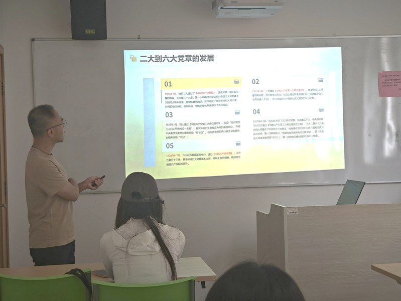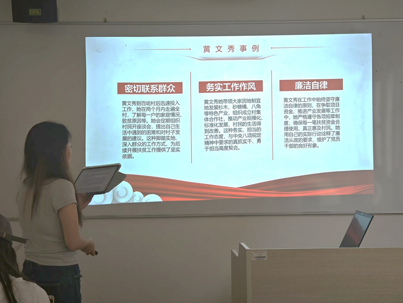 5月,第二党支部走进“一站式”社区,党支部书记田文嘉同学围绕中央八项规定精神的内涵与鲁迅先生的优良作风和黄文秀同志的感人事例,党总支书记赵鹏飞老师围绕党章的制定、修正历程与对党员、尤其是学生党员的基本要求,开展书记讲党课主题党日活动。通过学习,大家体悟到中央八项规定精神不仅是作风建设准则,更是党员行为的标杆。鲁迅先生用文字为百姓呐喊、黄文秀用脚步丈量民情,他们让我们明白真正的党员从不是空谈,而是将“联系群众、担当实干”践行到底。青年学子们表示,将认真贯彻落实中央八项规定精神,不断加强学风、作风,为强国建设、民族复兴贡献自己的青春力量。