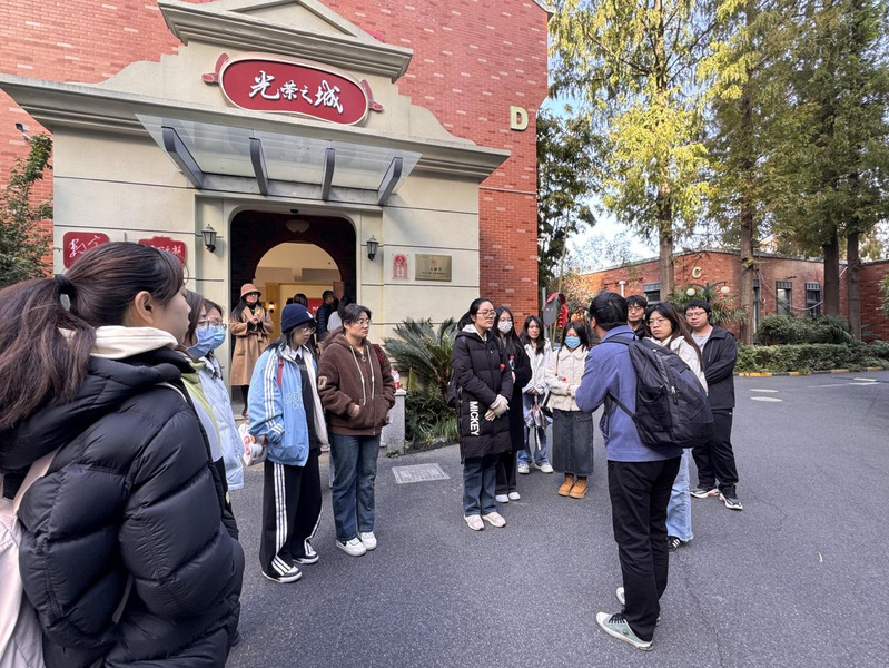 抵达目的地后,全体成员在讲解员的引领下,首先开展了区域性历史建筑现场教学活动。队伍先后参观了1933老场坊(上海工部局宰牲场旧址)、哈尔滨大楼、1913老洋行、作为上海警察系统首个中共地下党支部所在地的嘉兴路巡捕房等具有代表性的历史建筑群。音乐谷所在的虹口区自19世纪中叶起,历经时代变迁,饱经沧桑与磨砺。虹口区东北部,百年前曾被划定为美租界,后改称上海国际公共租界。而虹口区西南部仍属华界,此地拥有大量文化地标,鲁迅、瞿秋白等文化名人曾在此生活和工作。这段沉重的历史,应被我们深刻铭记。在百年石阶之上、斑驳红墙之间,学员们认真聆听建筑背后的历史变迁与红色故事,在行走中了解城市历史,以期深刻体会上海作为党的诞生地所承载的厚重底蕴与光荣传统。党员和积极分子在聆听过往故事的同时,也满怀对未来的期许,传承着血脉中的红色基因。